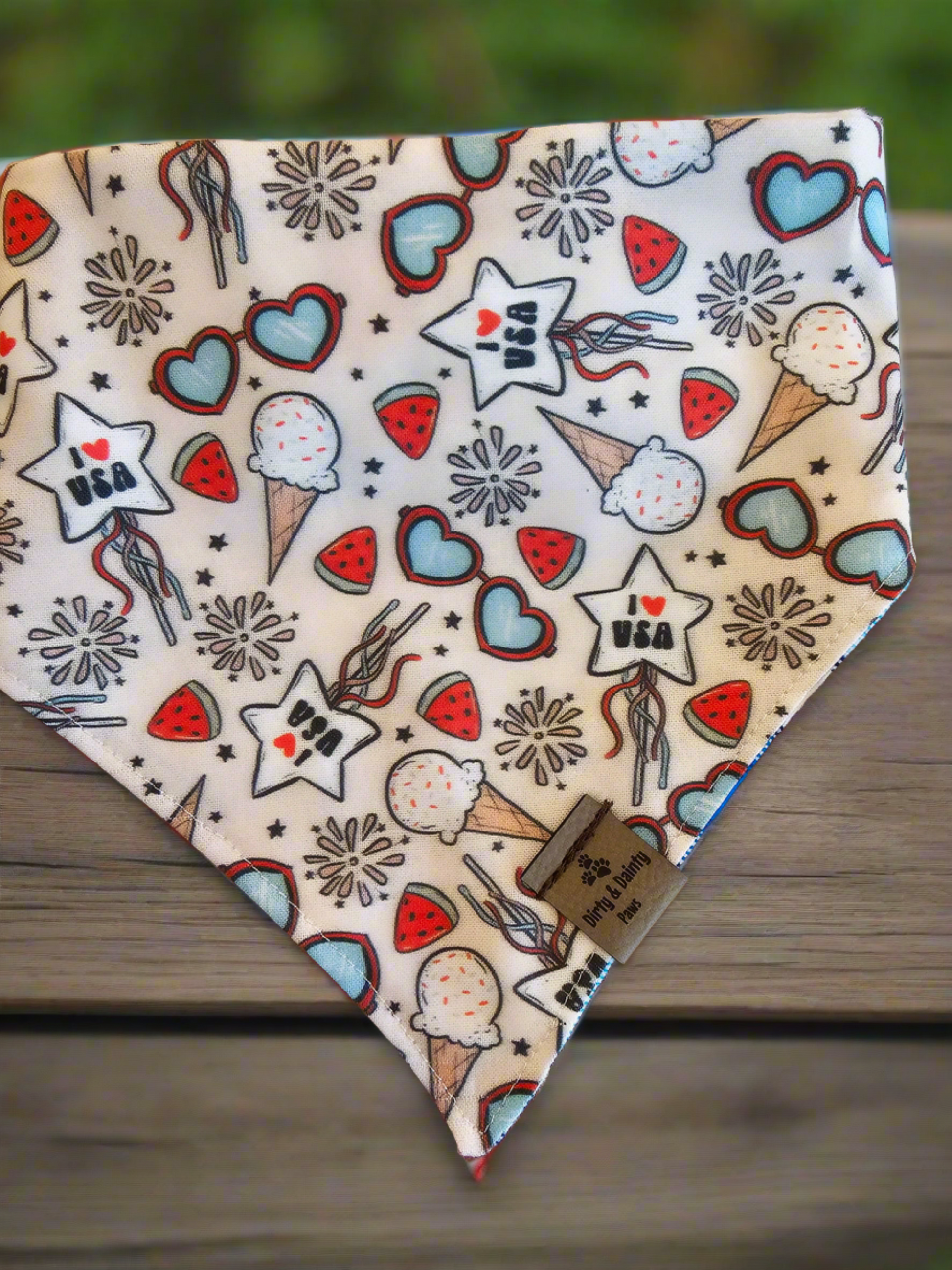 Whether you’re heading to a barbecue, watching fireworks, or enjoying a festive parade, our 4th of July Reversible Dog Bandana is the ideal accessory to keep your dog looking and feeling cool.