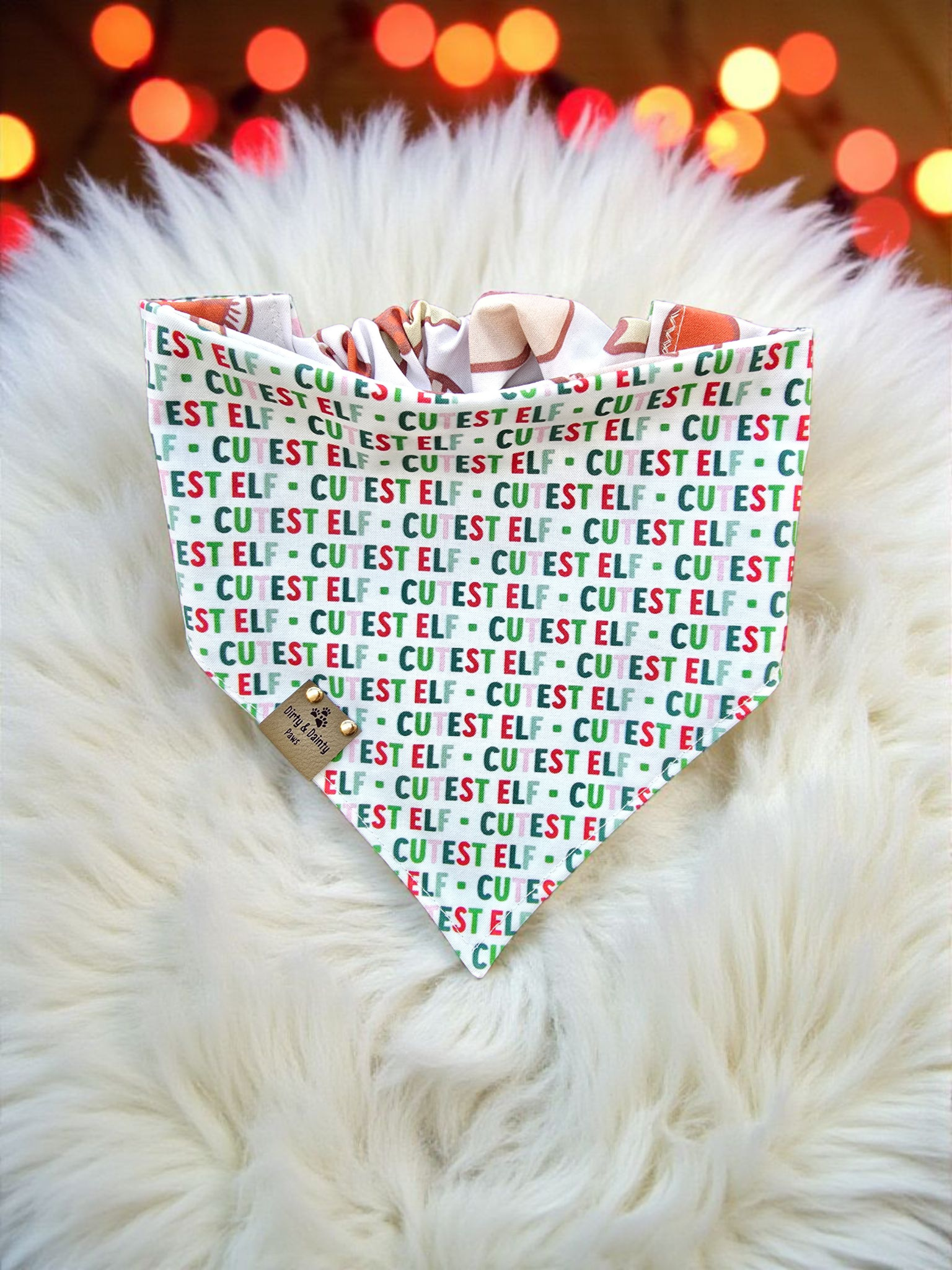 Cutest Elf| Festive Reversible Scrunchie Dog Bandana | Cozy Cotton