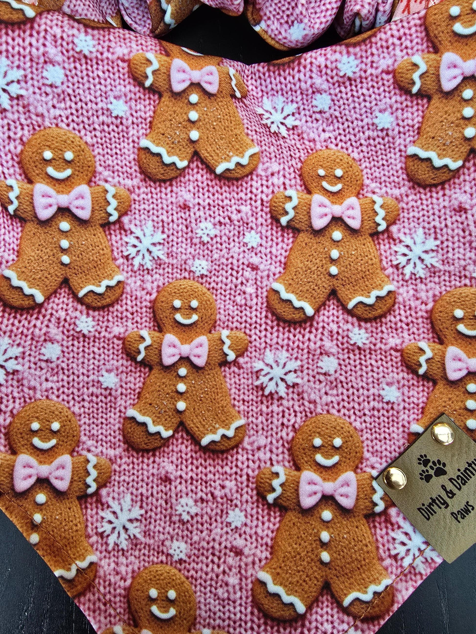 3D Embroidered Gingerbread Man & Candy Canes ZoomieProof™ Dog Bandana – Reversible Scrunchie Bandana Holiday Accessory