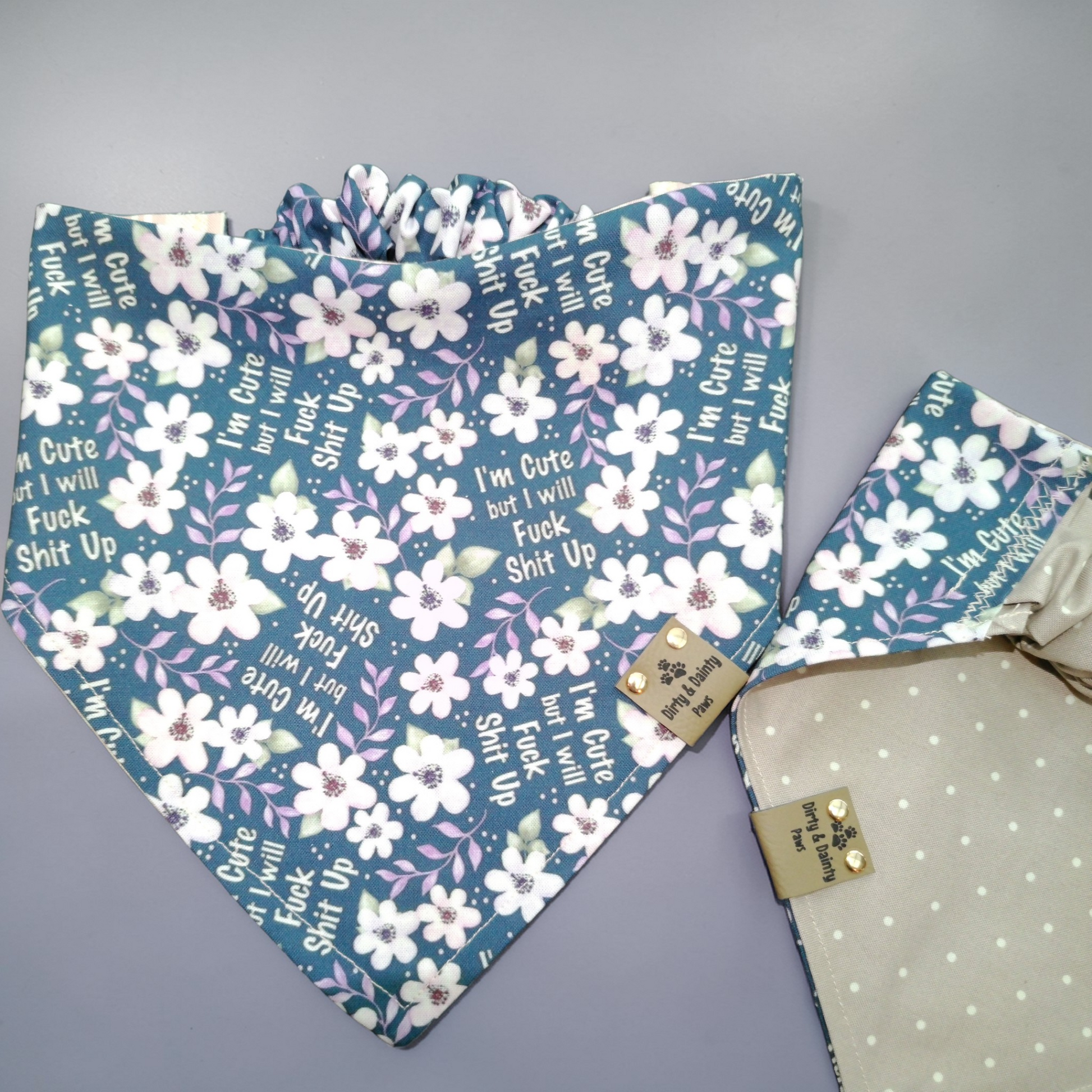 Funny Floral Dog Bandana – I'm Cute But I Will F*ck Sh*t Up | Reversible Cozy Cotton Scrunchie