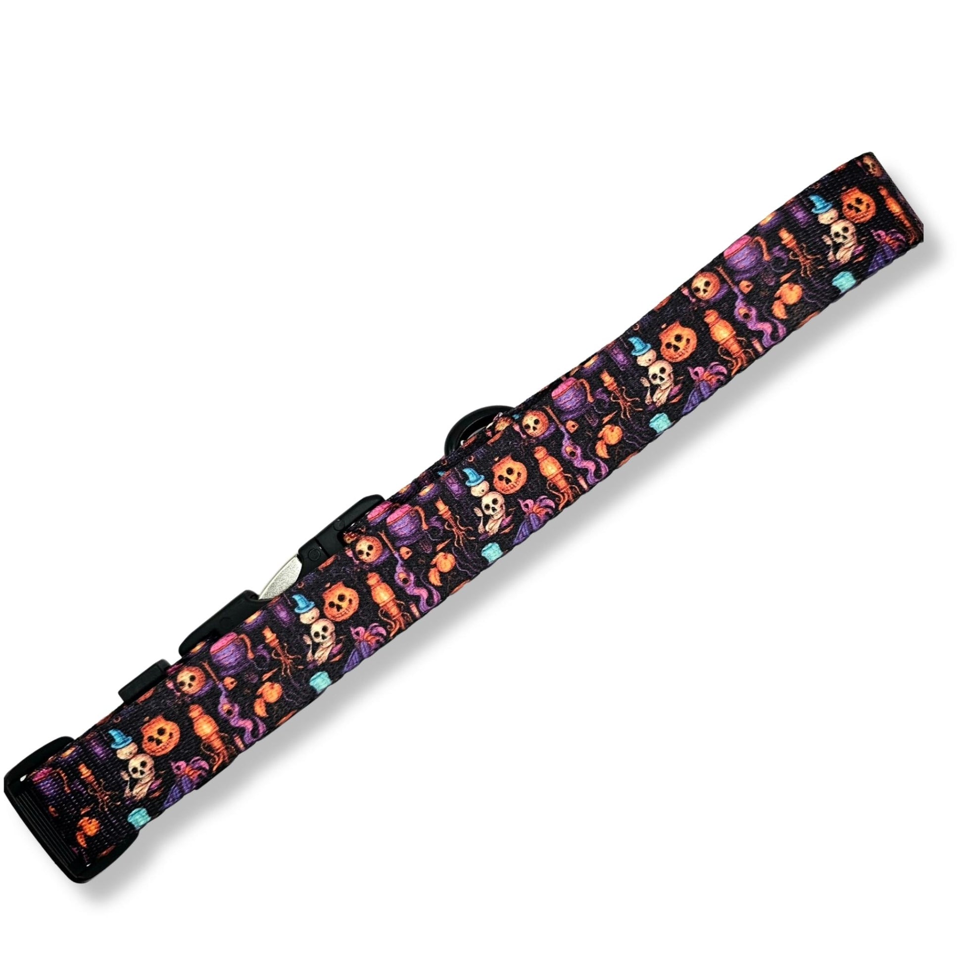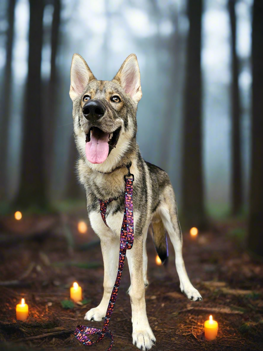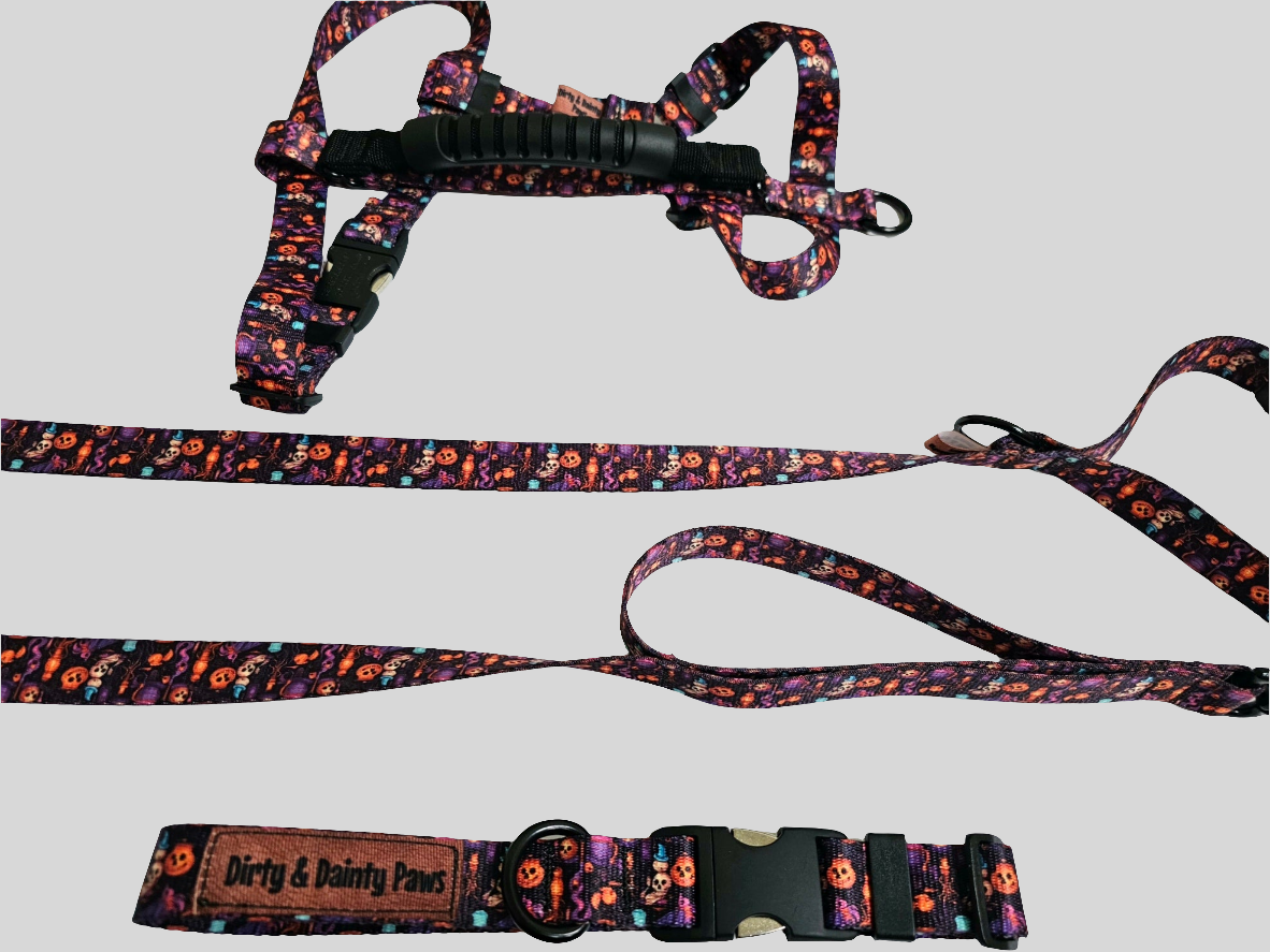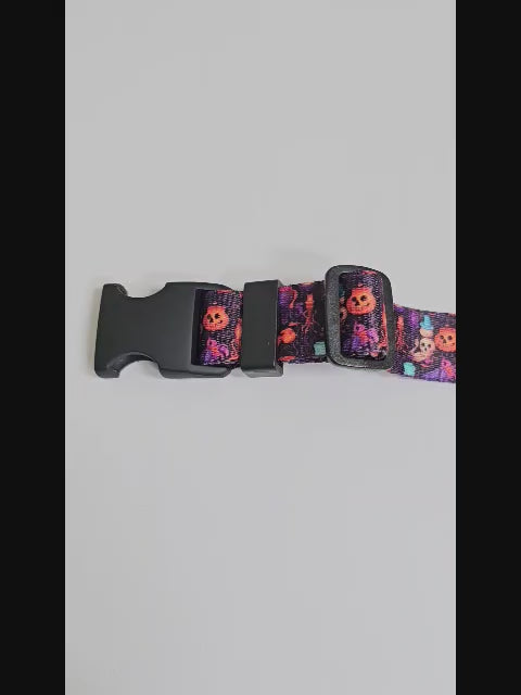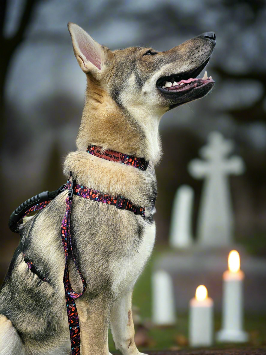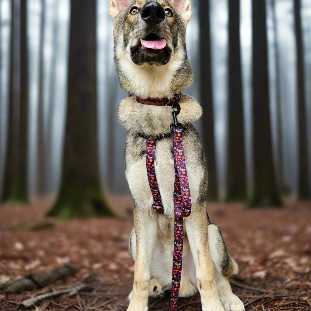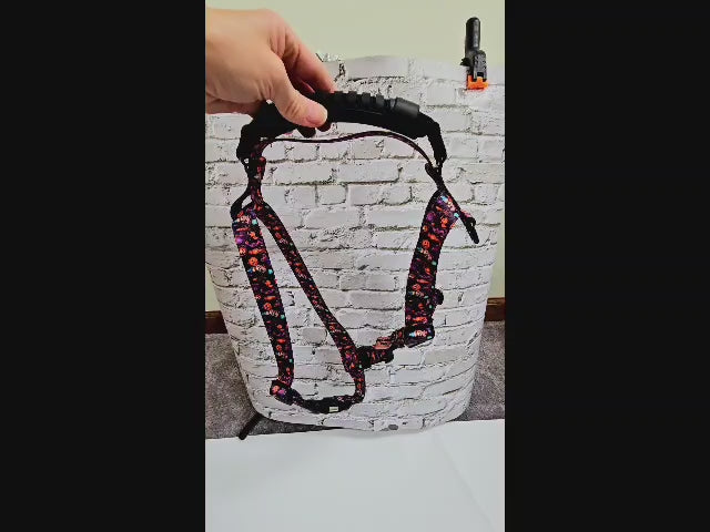 Try to hold your spooky spirit excitement in over this Spooky Jack-O-Lantern Harness. In a Y shape to give your pup ultimate comfort, while never compromising strength. Made with a Anodized Aluminum side release buckle, 1" picture perfect polyester, a working load of 1250 lbs, break load of 3800lbs, and a comfort grip on the top for quick control of your precious pupster. 4 adjustment points to get the perfect fit. Made in the USA with love.