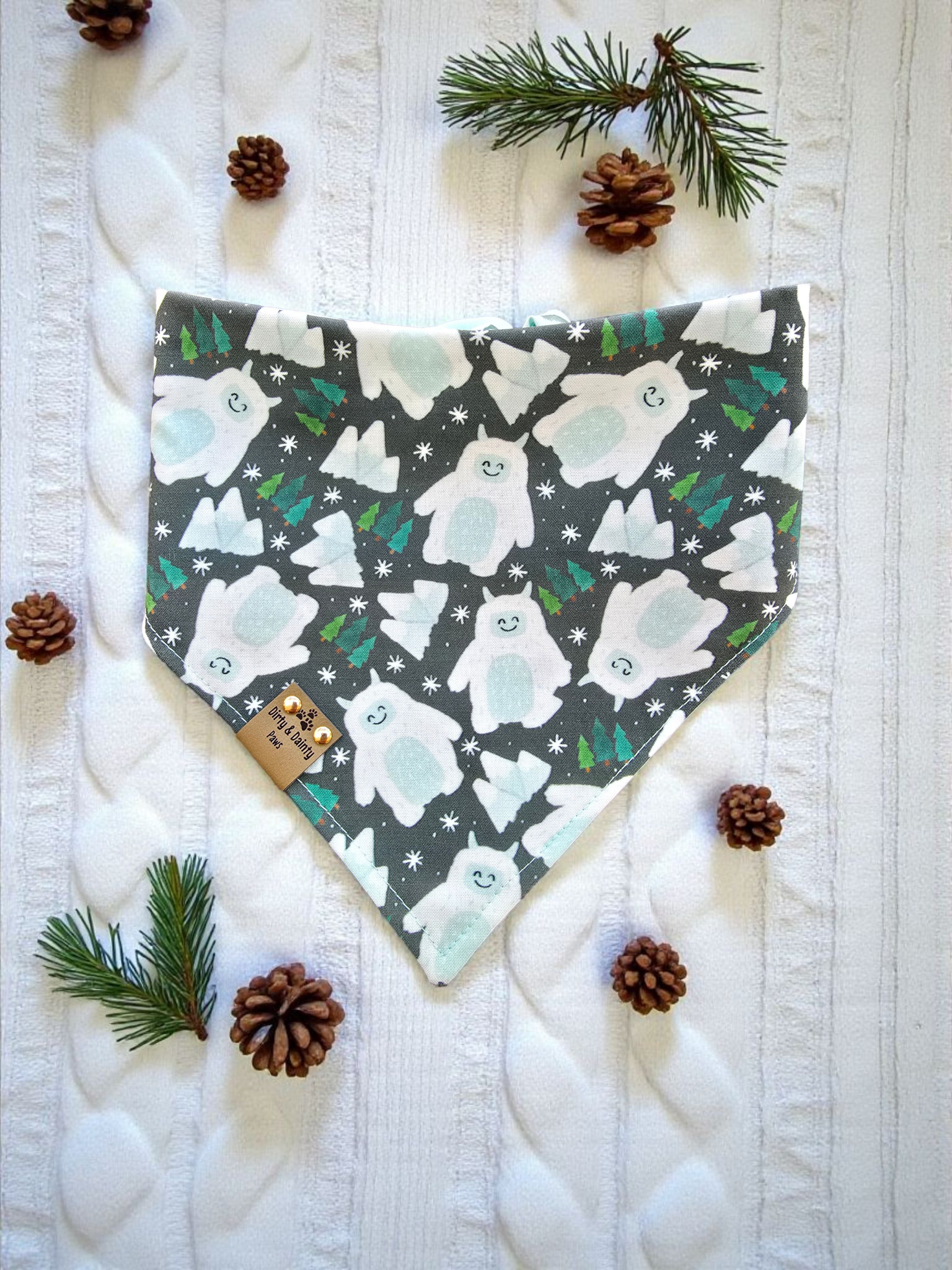 Make winter adventures legendary with our Yeti Wonderland bandana! Featuring playful yeti illustrations against a snowy mountain backdrop, this fun design is sure to stand out all season long.